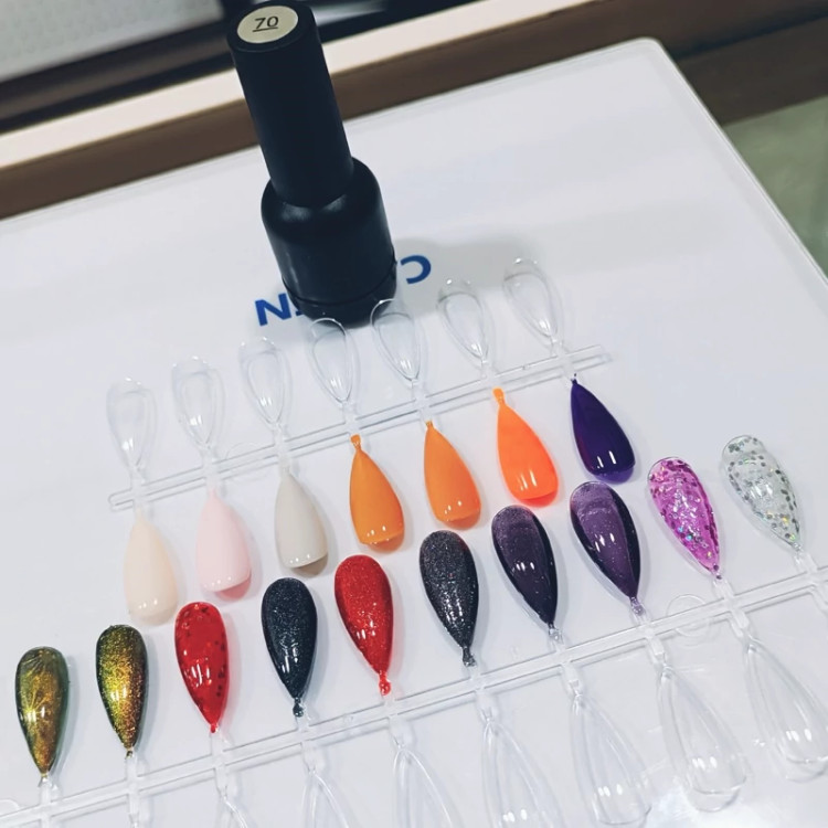 - ظاهر براق و حرفهای: پس از خشک شدن، سطح ناخن بسیار صاف، براق و یکدست میشود و جلوهای شبیه ناخنهای کاشت دارد.