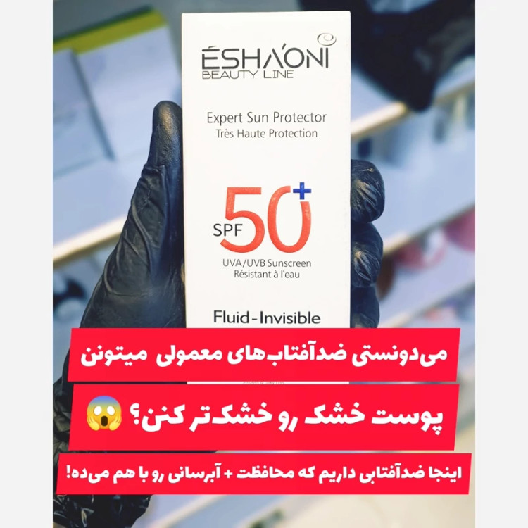 ضد آفتاب بی رنگ آلمانی ESHAONI فلوئید مناسب پوست نرمال و خشک